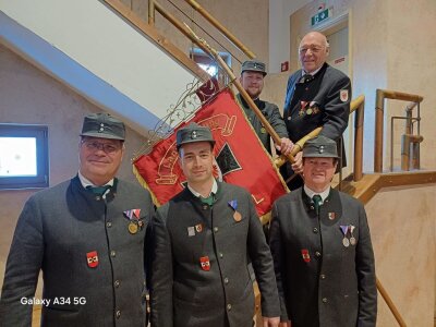 und der Landesstandarte mit Fähnrich Walter Lewchner und Fahnenbegleiter Eigentler Walter und Daniel Kraker.